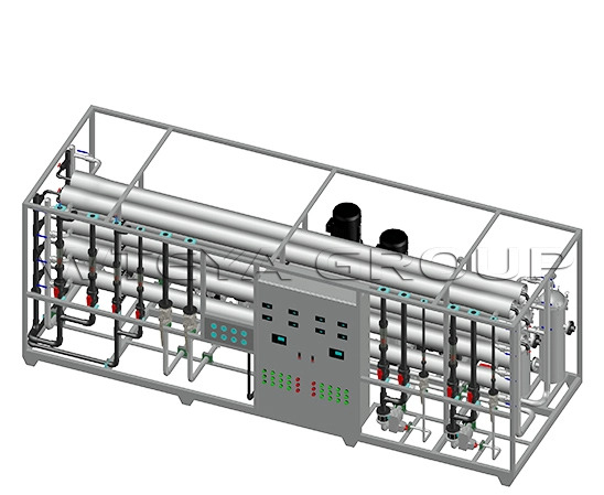 En el sistema de tratamiento de agua RO, agua turbulenta después del pre-tratado para eliminar suspensiones, cloro y algunas sustancias orgánicas, lleno de alta presión superior a su presión de ósmosis. Luego, el agua a alta presión se envía al elemento de membrana RO con microapertura y capacidad de transmisión selecta, solo permite el paso de las moléculas de agua y previene la mayoría de las sustancias solubles como la sal y las bacterias. Por lo tanto, cuando el agua entra en contacto con la membrana de RO, las moléculas de agua regresan a través de la membrana bajo la acción de la presión hacia el agua pura, mientras que la solubilidad queda atrapada en el lado del agua turbulenta, lo que produce dos partes del flujo de agua: un lado es agua pura. (producción de agua) que elimina los contaminantes y el otro lado son las aguas residuales. (agua concentrada) que contienen contaminación concentrada.